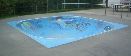 In Jena gibt es zwei kleine Pools. Beide liegen in unterschiedlichen Stadtteilen, der eine ist rot, der andere blau, ansonsten sind sie identisch. Gebaut wurden sie entweder von Concrete Rudolph oder von Skate Stone, hab ich leider vergessen. Auf jeden Fall gibt's Edelstahl-Coping, also hier schon mal Minuspunkte.