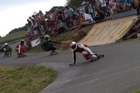 Das Samstagswetter zeigte sich, wie auch an den Vortagen, von seiner besten Seite. Der Raceday begann mit gemütlichen Warm-Up und dem Buttboard-Race. Gestartet wurde das Qualifying nach dem legendären „Le-Mans-Start”, bei dem alle Teilnehmer zu ihren Brettern laufen mussten, um ins Rennen gehen zu können. Sieger wurde Gerrit Geiger, vor Mögele aka Coach Hias, Jürgen Gritzner und Nico Nührig. Im Anschluss an das Buttboardrennen, folgten die Juniors. Pan Diemer, der in der Open Class ebenfalls stark unterwegs war, gewann vor Pedro Dederer und Julian Marksteiner. Zwischen den beiden kämpfen die Ladies um den Einzug ins Finale. Lokalmatadorin Dana Schitter konnte sich mit einem schönen Überholmanöver nach der S-Schikane den ersten Platz sichern und verwies Tina Zobel auf Platz zwei. Dritte wurde Sabine Schneider vor Jenny Schauerte.