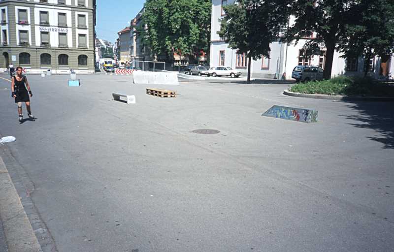 Am Wettsteinplatz steht eine kleine Fläche zum Skaten zur Verfügung. Ein paar wenige heruntergekommen Obstacles machen aus dem Platz einen Treffpunkt für entschlossene Streetskater, die sich mit den zwei Grindboxen, der seltsamen Quarter und der ausgemusterten Betonbank sicher endlos beschäftigen können. Eine Reise nach Basel lohnt sich wegen dieses Spots sicher nicht, wenn aber das Wetter gut ist und es dem Streetskater in der Landihalle zu heiss wird, kann er bei einem Stadtbummel sicher auch hier einen Abstecher machen.
