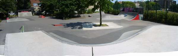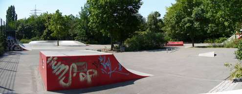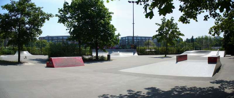 Relativ neuer Skatepark vom ConcreteRudolph. Relativ deswegen, weil zwei bis drei Elemente letztes Jahr schon standen, und der Rest dieses Jahr dazu kam. Letztes Jahr hab ich mir gedacht, typischer Stadtteilpark, zwei Rampen stehen da rum für nix. Aber jetzt, wo er komplett ist, muß ich sagen, das ich diesen Park sehr geil finde. Sinnvoll angeordnet, spaßige Obstacles dabei, die Maße passen, etc. Man kann schön ne kreisrunde Line fahren. An der Quarter mit der langen Nase kann man monstergeile Transfers machen, genauso über das Element mit der Corner und dem Wobbel. Der Rest ist zwar Standard, aber das ist ja ok, und es ist bis auf ein Londongap sag ich jetzt mal alles dabei was es so gibt. Der Boden ist Asphalt, aber schön glatt.