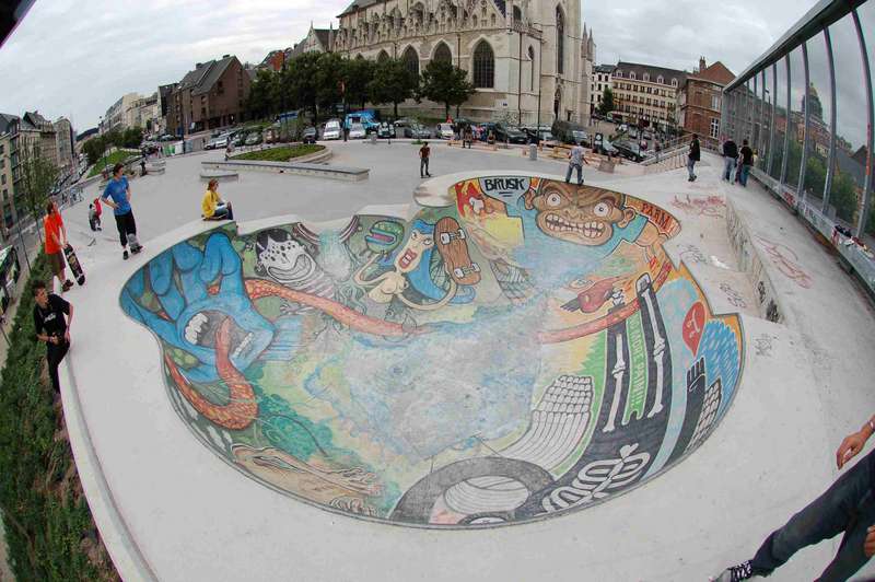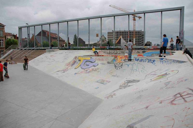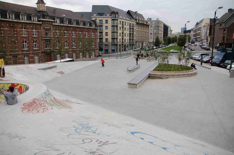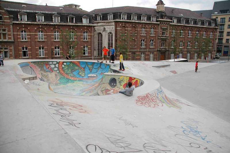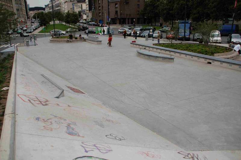 Brüssel hatte bis vor wenigen Jahren zwei Bowls mit nahezu quadratischem Grundriss, die über einer Spine miteinander verbunden waren. Diese wurden dann aber zugeschüttet und mittlerweile steht dort auch etwas Kleinkrams zum Skaten. Wenige Meter um die Ecke, bei der großen Kirche steht dafür ein neuerer Skatepark mit D.I.Y.-Pool und Streetfläche.