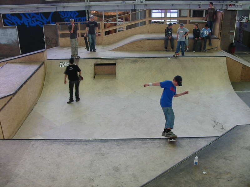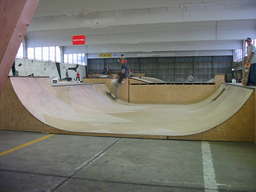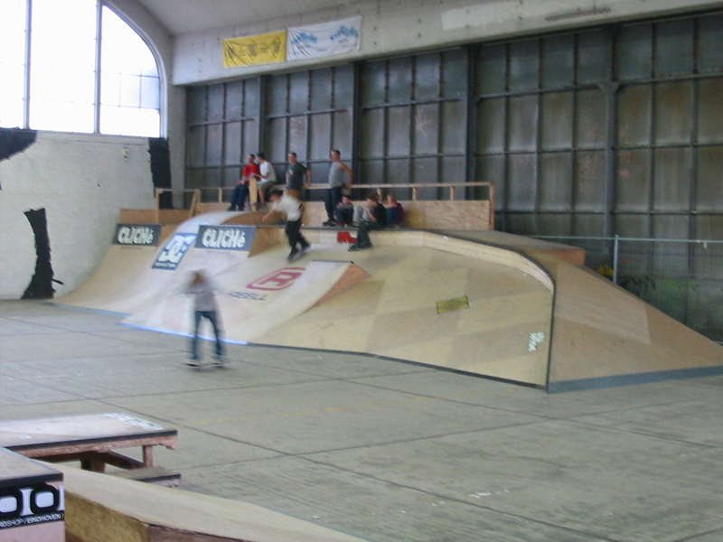 Die Halle in Eindhoven ist eine der besten Skatehallen in Europa, mit dem wohl besten Holzbowl (ok, sagen wir genauso geil wie Winterthur :) den es gibt, dem MU-BOWL. Alleine schon nur das Besichtigen der absolut wahnwitzigen Konstruktion von diesem Bowl ist 'ne Anreise wert, ich hab selten was krasseres gesehen, absolut technische Meisterleistung. Und fahren läßt sich das Teil … traumhaft.