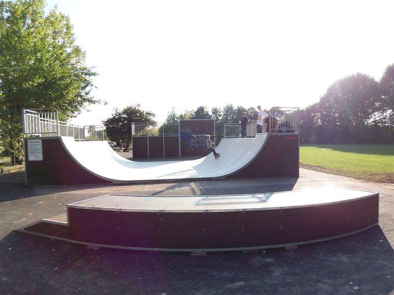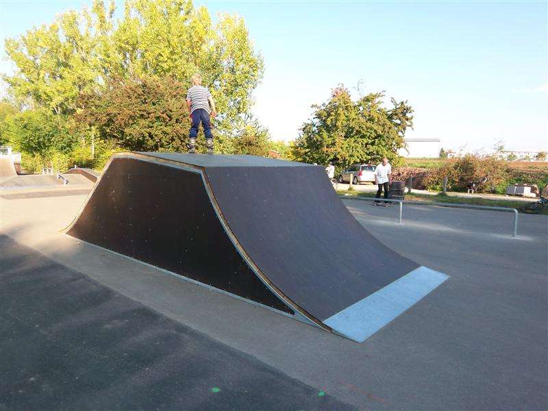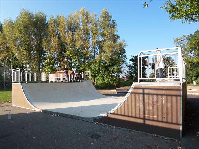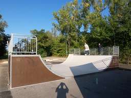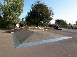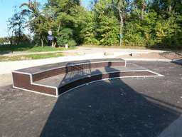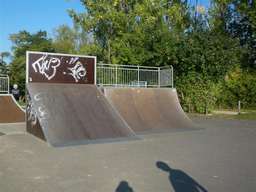 Neu gestalteter Platz, der bis vor kurzen nur ein paar richtige scheiss Rampen zu bieten hatte. Der ganze Platz wurde um das doppelte vergrößert und mit einer neuen Quarter-Bank-Quarter, Funbox, Kurven-Curb und Pyra (alles mit Skatesmart belegt) versehen. Außerdem stehen da schon die etwas ältere Bank und Quarter, ein Curb mit Wheelie-Table und zwei sehr unterschiedliche Rails. Die Rampen ansich sind Geschmacksache, die Funbox ist z.b. nicht ganz mein Ding, das Rail auf der Pyra ist zu kurz, etc. Aber da hier und da Kompromisse eingegangen werden mußten, geht das Ganze trotzdem absolut ok. Die ganze Planung und Durchführung (Herzogenaurach hat Geld (Puma, Adidas, INA) ohne Ende, und trotzdem war das alles andere als leicht Geld von der Stadt zu bekommen!) wurde vom Marco aka XWD-Skate/Inline-Shop durchgeführt. An dieser Stelle vielen Dank Marco! Außerdem steht da noch eine dicke Minirampe, mit 150 cm Höhe und 750 cm Breite ein schönes Teil, die für meinen Geschmack steiler sein könnte, zum Heizen und Tricks lernen aber allemal Spaß macht. Alles in allem ein guter Skatepark, von Skatern für Skater, kostenlos und am Stadtrand, wo man auch mal schön 'nen Grill und 'nen Ghettoblaster aufstellen kann.