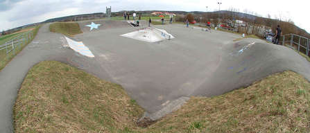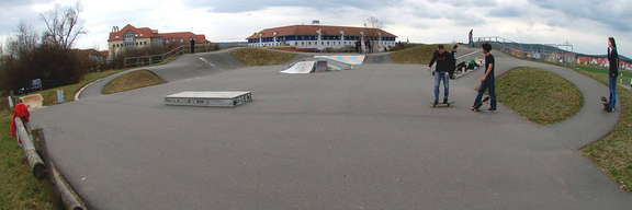 Bei dem Park handelt es sich um einen Asphalt-Park, der beinahe von Blackriver Ramps sein könnte. Für 'nen Asphalt-Park wirklich nicht schlecht. Der Park ist an drei Seiten mit asphaltierten Banks versehen, die für Asphalt relativ steil sind. Das heißt, man kann gut durchheizen. Positiv ist auch, dass der Belag wirklich schön glatt ist. Leider sind die Corners nicht ausgefüllt, was aber angeblich geändert werden soll. In eine Bank ist ein Coping eingelassen, aber so was funktioniert bei Asphalt leider nie so wirklich gut. Lässt sich aber trotzdem grinden. In eine andere Bank ist eine Treppe samt Rail eingebaut. Das Rail macht aufgrund des fehlenden Anlaufs wenig Sinn. Die Treppen könnte man zum Grinden verwenden, allerdings soll das Edelstahl nicht rutschen, wurde mir zugetragen. Mittendrin steht dann noch 'ne Fertig-Funbox und ein Curb. Der Park lässt sich mit Sicherheit noch ausbauen und verbessern, was die Locals scheinbar auch vorhaben. Old-Schooler, Carver, Longboarder, Heizer etc. werden hier sicher ihren Spaß haben.