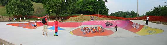 Die Fotos des Parks stammen aus dem Jahr 2003. Der Park wurde von Concrete Rudolph gebaut. Ein Bericht im Boardstein hat dann Concrete Rudolph veranlaßt, auch verzinktes Stahlrohr anzubieten. Das Teil ist wirklich geil, kostet keinen Eintritt und die Locals sind nett. Die Transition paßt optimal, smoothe Oberfläche, Höhe von ca. 120 cm bis 180-200 cm, aber leider nur Edelstahl-Coping. Geht aber trotzdem ganz gut. Angeblich soll der Park mit ner fetten Streetfläche weiter ausgebaut werden, haben einmal die Locals vor Ort damals gesagt. Ob das inzwischen passiert ist? Keine Ahnung …