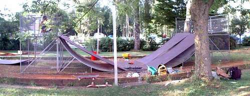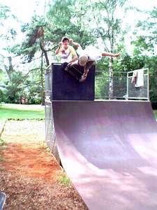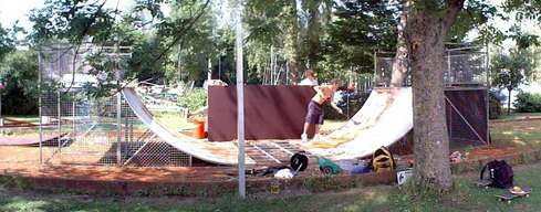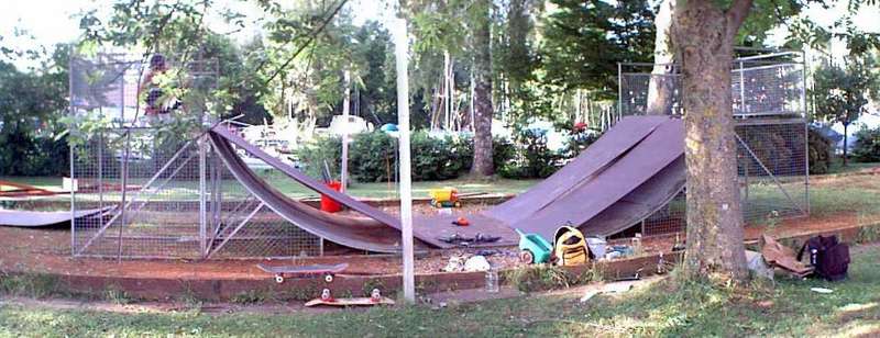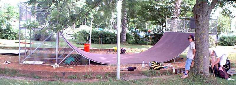 Es gibt gute Nachrichten vom Ammersee! Wir haben jetzt endlich eine Miniramp und zu der sind wir wie die Jungfrau zum Kind gekommen. Die Ramp ist eigentlich so eine Art Jugendfreundin von mir. Der Besitzer hatte Anfang der 90er in Landsberg einen Skateshop und vermietete das Ding für verschiedene Veranstaltungen (z.B. Inline-Disco 1991 im Landsberger Eissportzentrum). Später stand sie dann in der Kaufbeurer Skatehalle, die es ja leider auch nicht sehr lange gab. Danach war sie irgenwie verschollen und irgendwann hat mir dann ein Kumpel erzählt, dass am Campingplatz eine Mini steht. Die Wiedersehensfreude war natürlich groß, aber leider war der Belag nach 15 Jahren komplett im Arsch. Freundlicherweise hat uns der Pächter vom Minigolfplatz, auf dessen Grundstück die Ramp steht, auch noch das Geld für die neuen Siebdruckplatten gegeben, obwohl er sebst nicht skatet (Danke Markus!). Das Ergebnis seht ihr auf den Fotos. Das nervige ist, dass uns ein einziger Mongo von den Dauercampern natürlich wieder Stress macht und schon zweimal die Polizei wegen "Ruhestörung" vorbeigeschickt hat. Wir haben uns jetzt auf "Öffnungszeiten" von 14.30 bis 18.00 Uhr geeinigt. Ansonsten ist der Spot genial, die Ramp steht schön im Schatten unter Bäumen, am Kiosk nebenan gibts kaltes Bier, Pizza etc. und der Ammersee zum Abkühlen ist nur 100 m entfernt.