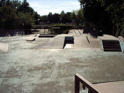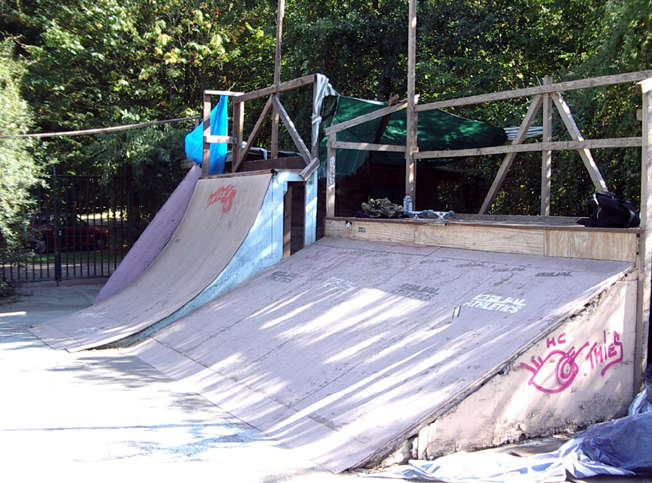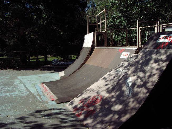 Der Park bietet zwei große Pyramiden-Funbox-Hybridteile, eine Grindbox in der Mitte und an beiden Seiten Banks und Quarters (in verschiedenen Höhen zwischen ca. 160 und 230 cm) um die Line nie abreißen zu lassen. Außerdem stehen noch einige andere Obstacles wie etwa Rails und Jumpramps in der Gegend rum, die jedes Mal anders verwendet werden können. Insgesamt ein wirklich guter Park, auf jeden Fall ist er um einiges lohnenswerter als die verbauten Betonparks in Karlsruhe.