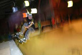 Dann kam der Samstag, eigentlich ein regulärer Contest-Samstag von den nächtlich verstopften Klos mal abgesehen. Man kennt das, Samstag fahren alle mehr oder weniger verpeilt ihre Qualis, da flowt Tomas Vintr einen sauberen Run zusammen, Patrick Ahlfeld kann noch immer gut skaten poppt einen Ollie über die ganze Box ins Flat, Nollie-Crooks hier und FS-Flip das Gap hoch. Chris Oliver hat die Idee mit dem Up-Rail und der Quarter verstanden: FS-Blunt hoch, Kickturn und FS-Flip die Stufen wieder runter, wahlweise auch FS-Nosegrind hoch und 360-Flip runter. Der Phantasie sind da, wie man so schön sagt, keine Grenzen gesetzt. So plätschert oder blastet, je nachdem, die Qualifikation dahin. Vincenz Golly fährt einen guten Run und landet in den Top-Ten, Amir Williams fährt clean und Javier Mendiezabal ist ohnehin, und wer wüsste das nicht, ein Ruler vor dem Herrn. Der Wallride ist ca. 4&mbsp;m hoch, hat schlappe 1,5 m Vert, dazu ist er nur gute 2 m breit. Das hält Javier aber nicht davon ab, einen FS-Air über das Coping zu ballern. Ja, und Ritchie. Der Yoda des Skatens. Einfach schön, dass die Szene solch tolle Menschen hat. Ritchie kann aus der Quarter BS-to-Wallride auf die Hallenmauer ollien (siehe baldiges Helge-Foto). Ritchie kann im Wallride des Bowls einen FS-One-Foot machen und das Tail an das Beton-Coping knallen. Und Ritchie kann in seinem Run einen lupenreinen Noseslide an der 1,5 m hohen Mauerkante neben dem Curbcut rutschen, ohne ihn je probiert zu haben; und er lässt sich dabei auch nicht von herabhängenden Drahtseilen irritieren. Trapresent. Danny Wainwright ist dagegen nicht so gut drauf und verpasst den Cut. Gregor Blisse fährt gewohnt konstant, nolliet die Pyra und landet seinen Ollie-Transfer-to-FS-Lipslide. Wie das halt so ist. Lukas Stix ist ungefähr einen Meter groß, nicht älter als 9 Jahre, macht aber wehenden blonden Haares freche FS-Flips das Gap hoch. Und den Namen Finn Spitzner sollten sich all jene merken, die Ripper von morgen schon heute kennen wollen. Talentsucher Löffel hoch! 13 Jahre, aus Hamburg und hat Angst vor nix. Im Pool machte er schnelle BS-5-0s den Escalator hoch, sowie FS-Ollie-Revert in den Wallride. – DASS jemand wie Antony Lopez die Funbox mit einem Bilderbuch FS-Nollie überquert, ist nicht so erwähnenswert. Solche Leute sind Pros, irgendwas müssen die ja dafür tun. ABER dass jemand wie Antony Lopez selbigen FS-Nollie jedes verdammte Mal so sicher, schnell und schön da längs poppt, und zwar nur um auf dem Rückweg genug Speed für den Switch-FS-Salad am Uprail zu haben DAS, ja das finde ich in der Tat erwähnenswert.