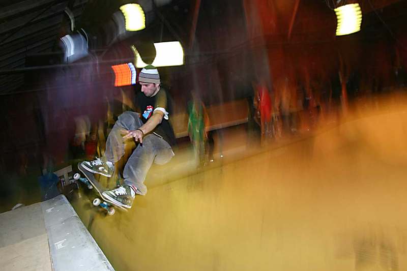 Und alle waren gut gelaunt. Bis dann der Strom ausfiel. Wer das Gelände und das Alter der Leitungen ahnt, den dürfte das bei dem Wirbel in der Halle nicht besonders gewundert haben. Man stelle sich vor: bis auf die Hallenbeleuchtung funzte keine einzige Steckdose auf dem Gelände mehr. Aber der Skatehalleneröffnungsgott hatte Mitleid und ließ die Practice-Session weiterlaufen, während im Hintergrund panisch nach den Ursachen geforscht wurde. Doch es sollte noch dicker kommen: am Samstag kam es zu zwei Einsätzen einer Firma für Ohr- und Analreinigung: die Toiletten schienen dem Ansturm (inklusive Toilettenpapier-Terroranschlägen) noch nicht gewachsen. Angesichts dieser mittleren bis ausgewachsenen Katastrophen kann man nur sagen: die Halle hat die Feuertaufe bestanden.