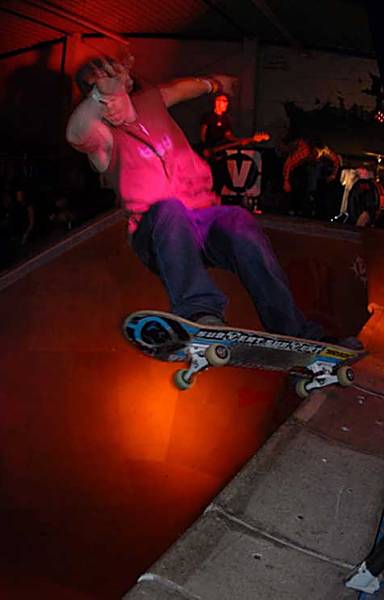 Trotz des hohen Niveaus in der Halfpipe war das Highlight des Events ohne Zweifel das Bowl-Finale. Dafür hatte Lux die schwedische Skatepunk-Band CONCRETE SKATE SNAKES aus Malmö engagiert, die das Finale live von der Oververtcorner aus begleiteten – die perfekte Bühne! Zudem wurde veranlasst, dass erstmalig zu einem Contest die sterile Hallenbeleuchtung ausgeschaltet wurde und farbiges Licht eingesetzt wurde.
