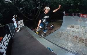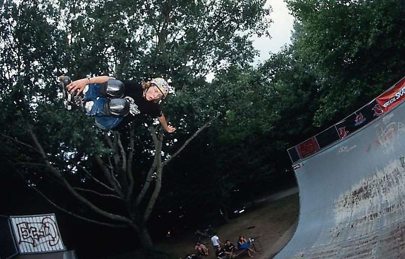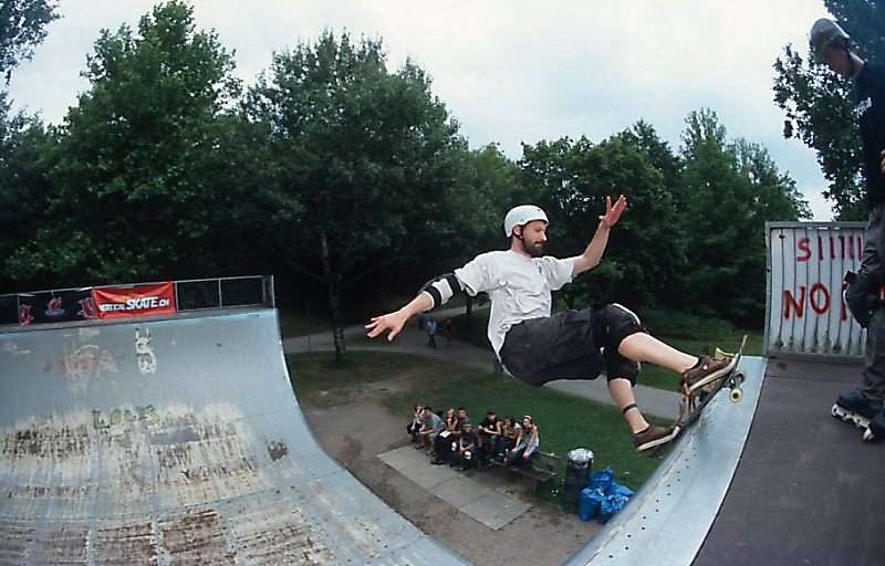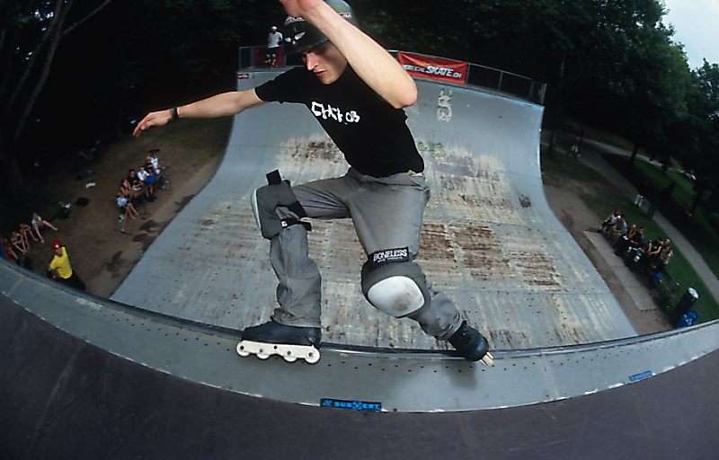 Am Sonntag führten wir noch mit den verbliebenen Fahrern einen Best-Trick-Contest durch. Das Schöne war, dass auch zwei Fahrer am Start waren, die am Samstag nicht gefahren sind. Bei den Eight-Wheelern fuhr der Rollerskater Jochen Biel die Session mit, bei den Skateboardern Mitveranstalter Sven Schuhmacher, der mit einem fetten Melanchollie-Fakie den besten Skateboard-Trick machte. Bei den Eight-Wheelern überzeugte Johannes Zenk mit seinen sehr technischen Liptrick-Kombos.