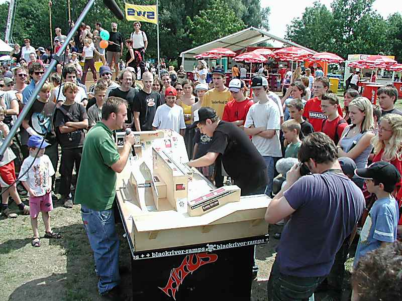 Das eigentliche Programm, also der Fest Cup startete am Samstag, wo Contest und auch zahlreiche Shows gefahren wurden. Ich muss sagen, dass es mit einer der ersten Contests in meiner Laufbahn als Skateboarder war, an dem der Zeitplan eingehalten wurde. Es fing ganz klein auf der Fingerboardanlage an, wo sich die Kids, die – man soll's kaum glauben – sogar aus der Schweiz kamen und sich ein regelrechtes Fingergemetzel gaben! Natürlich machten sich da viele einen Spaß daraus, da das Fingerboarden schon als Sport angesehen wird, und ich meine: ... na ja!