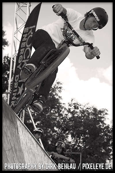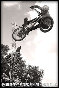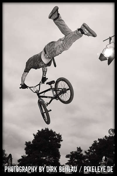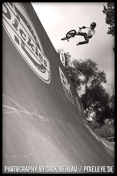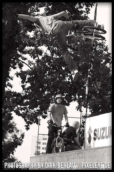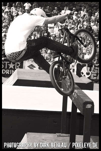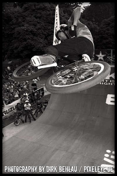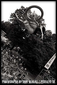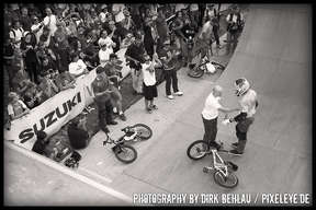 Über sechzig Pro-Fahrer rockten bei der Qualifikation die gigantischen Jumps des Dirt Parcours dermaßen überzeugend, dass diesmal mit 18 Fahrern bei den Finals gestartet wurde. Die Verlagerung der Dirtline unter die Zoobrücke brachte dieses Jahr Fahrern und Zuschauern noch mehr Aktion und blendende Einblicke in die wahnsinnigen Abflüge. Sieger Ryan Guettler (AUS) erwischte einen wirklich guten Tag: 1080, Frontflip on the Step up und one hand one foot 720 sind allesamt Tricks der Kategorie Extraklasse! Der zweit platzierte Corey Bohan punktete mit unglaublichen Turn Down Flips und den dritten Platz belegte Dirt-Virtuose TJ Ellis (USA). Die TV-Interviews mit den Fahrern führte kein geringerer als BMX-Legende Mat Hoffman (USA)!