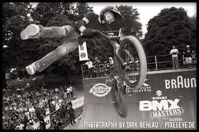Köln, 6. Juli 2008 Gott liebt BMX, zumindest der Gott, der für das Wetter bei den Suzuki BMXMasters 2008 zuständig war. Denn wieder mal brannte die Sonne den Weg frei für ein BMX-Spektakel der Extraklasse. Über 500 Fahrer aus 31 Nationen tricksten jegliche Gesetze der Schwerkraft aus und brachten über 14.000 Fans an den Rand der Ekstase. Dermaßen angestachelt von den lautstarken Ovationen der Fans ließen sich die Fahrer zu absoluten Höchstleistungen pushen. So waren die Pro-Finals aller fünf BMX-Freestyle Disziplinen eine sportliche Offenbarung für jeden BMX-Anhänger.