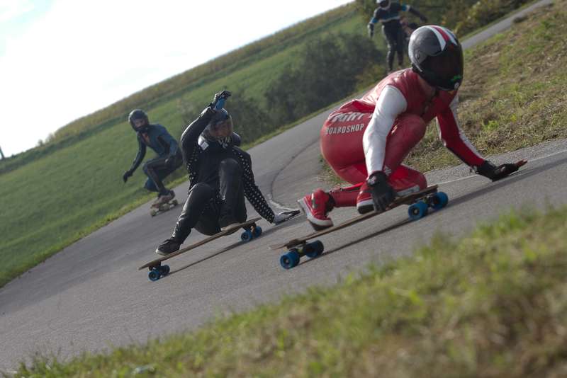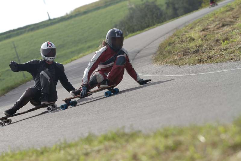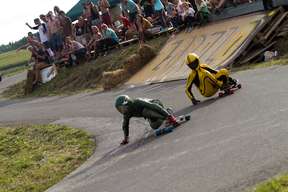 Das Samstagswetter zeigte sich, wie auch an den Vortagen, von seiner besten Seite. Der Raceday begann mit gemütlichen Warm-Up und dem Buttboard-Race. Gestartet wurde das Qualifying nach dem legendären „Le-Mans-Start”, bei dem alle Teilnehmer zu ihren Brettern laufen mussten, um ins Rennen gehen zu können. Sieger wurde Gerrit Geiger, vor Mögele aka Coach Hias, Jürgen Gritzner und Nico Nührig. Im Anschluss an das Buttboardrennen, folgten die Juniors. Pan Diemer, der in der Open Class ebenfalls stark unterwegs war, gewann vor Pedro Dederer und Julian Marksteiner. Zwischen den beiden kämpfen die Ladies um den Einzug ins Finale. Lokalmatadorin Dana Schitter konnte sich mit einem schönen Überholmanöver nach der S-Schikane den ersten Platz sichern und verwies Tina Zobel auf Platz zwei. Dritte wurde Sabine Schneider vor Jenny Schauerte.