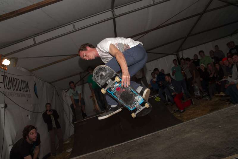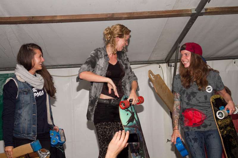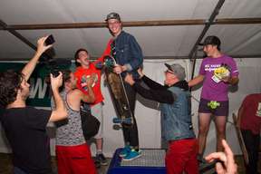 Das tolle Rennen wurde am Abend ausgiebig mit einem Miniramp Contest bis tief in die Morgenstunden gefeiert. Der Fehderhandschuh klatschte für die am Sonntag geplante Downhill Bonanza ebenfalls ordentlich in die Gesichter der Skater. Doch leider machte das tolle Wetter dem Downhill Bonanza einen Strich durch die Rechnung. Die lokalen Kürbisbauern mussten ihre Ernte einholen beziehungsweise die Kürbis stampfen, bevor die nächste Schlechtwetterfront die Ernte zerstören würde. Eine Selbstverständlichkeit für die Veranstalter, hier auf die Bonanza zu verzichten, denn nur durch die Zusammenarbeit mit den lokalen Bauern ist so ein geniales Skateboardfestival wie das LoRaLo 2014 möglich. Doch die Downhill Bonanza ist noch lange nicht Geschichte, ihre Zeit wird kommen und jedermann freut sich bereits auf die nächste Longboard Rally Lödersdorf!