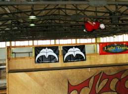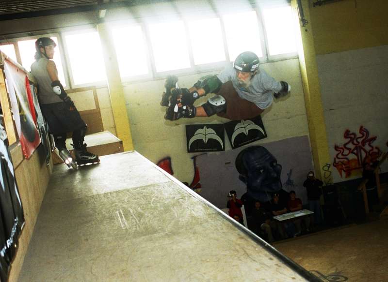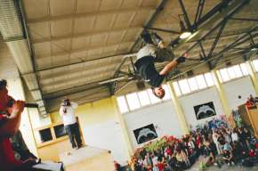 Und als man es eigentlich schon gar nicht mehr fassen konnte, was da gerade geht, legten Benni Drescher mit McTwist-720 to Bio-720 oder Kiro Trayanov mit einem Flatspin-540-Versuch über das Roll-In nach. Die Stimmung in Mühlhausen am überkochen - Richy Sedlar mit einem 2 1/2 m hohen Backflip-Indian-Grab und Patrick Zimmermann mit einem Frontside-900 gießen nochmal ordentlich Öl ins Feuer. Doch nicht nur für Freunde der Drehungen war etwas geboten. Kevin Lopez und Niclas Stephan zogen Backside-Shifty, die von hier bis nach Bangkok gehen. Markus Gebele mit Soul-to-Topside-Soul, Niclas Stephan zog einen Fakie-360-Shifty, Dennis Dutt mit 360-to-Soul-Stall. Kevin Quintin, Stephane Alfano und die Jungs um Jerry Bekkers hatten leider kurzfristig absagen müssen und der zweite bulgarische Skater Nik Naidenov hatte sich leider beim Training am Tag zuvor verletzt und konnte nicht starten, aber wahrscheinlich hätte man noch mehr Tricks gar nicht verkraftet. Die Halfpipe in Mühlhausen mit 4 m Höhe, 17 m Breite und einem fetten Roll-In läßt es einfach zu, dass sich die Fahrer austoben können. Alle Halfpipeskater sind sich einig, dass in Thüringen mit die beste Halfpipe in Deutschland, vielleicht sogar in Europa steht. Ein Ausflug dorthin lohnt sich auf jeden Fall. Auch für Street-Skater. Das Team vom Thuringia Funpark ist supernett, hilft Übernachtungen für lau oder wenig zu finden und ist auch sonst super :-).
