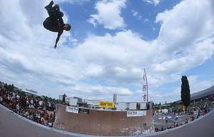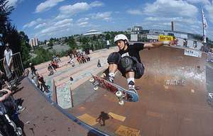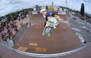 Samstag war locker: Den ganzen Tag schönes Wetter, gute Skatesessions und mehrere Leute filmten und fotgrafierten das Dargebotene. Und es trafen erstaunlich viele gerngesehene Gäste ein. Die französische Vertspitze um Terence Bougdour und Joris Brichet, der tschechische Vertpro Jan Tomsovsky, Franziska Stolz, Carmen Zobrist und Roger Ramseier aus der Schweiz, der Local-Ripper Steffen Busam, der Youngster Johannes Haist und der Upcomer Mike Kiefer aus Luxemburg. Der Sonntag begann so wie der Samstag aufhörte: Heiße Temperaturen, viel Energie und motivierte Rider. Leider blieb es nicht durchgehend dabei, denn der Contest wurde von mehreren Regenschauern überschattet, was zur Geduldsprobe wurde aber die positive Einstellung half darüber hinweg und gegen Abend lockerte es auf und es konnte dann doch begonnen werden. Kurz vor Beginn trafen noch die beiden Berliner Jürgen Horrwarth und Micha Puhl ein. Straßburg liegt im Zentrum Europas und zumindest was das Starterfeld betrifft entsprach es dem auch. Denn dies hätte fast schon für eine EM ausgereicht (bei der es leider keinen Vertcontest mehr gibt). Nachdem sich kurz alle einfuhren ging es dann auch los mit den Eliminations. Auch hier wurde schon viel gezeigt. Dann wurde auf 5 Rider gecuttet. Steffen, Jan, Terence, Joris und Jürgen trugen das Final unter sich aus. Es wurde im Jam-Format gefahren und nach und nach wurde der Level angehoben. Steffen begeisterte mit wilden Footplant-Varianten und One-Foot-Airs, Jan unter anderem mit Kickflip-Indys und die beiden Franzosen und Jürgen liefen zur Bestform auf. Jürgen zeigte ein wunderschönes Lineup, bestehend aus Liptricks wie bs Nosegrinds und Smithgrinds übers ganze Coping, hohe Ollies und Cabs, fs Boneless, one Foot Airs und bs 540. Total locker mit der entsprechenden Portion Power ist es fabelhaft ihm zuzusehen. Joris Brichet beeindruckte mit konstantem Skaten mit harten Tricks wie McTwists, 540 Varials (!), Kickflips-Indy, One-Foot-Mute Airs, back to back 540s. Alles schnell und konstant. Und Terence, fröhlich und geladen wie immer gab Vollgas: Hohe Airs, 540's, fs Rodeos, Kickflip-Indys und lange Runs. Somit gewann er und mit Jürgen und Joris gab es zwei 3. Plätze. Es gab Geld- und Sachpreise und zufriedenes Zusammensein unter den Ridern.